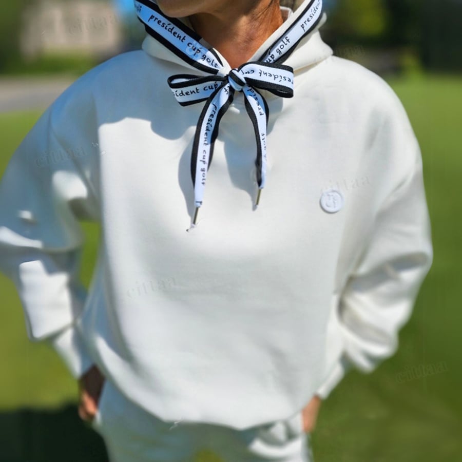 Y-4378【セットアップ可能】ラバーラベル付き英字ロゴテープフーディー ゴルフウェア アイボリー